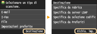 È possibile selezionare una destinazione tra le ultime tre utilizzate. Quando si specifica una destinazione utilizzata in precedenza, la macchina imposta anche le stesse impostazioni di scansione, come la densità, utilizzate per l'ultimo invio di documenti a tale destinazione.