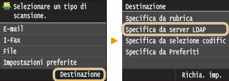 Se nell'ufficio è installato un server LDAP, è possibile specificare una destinazione utilizzando le informazioni utente nel server. Accedere al server LDAP tramite la macchina e cercare le informazioni utente appropriate e specificarle come destinazione.