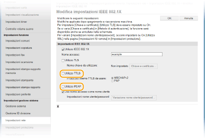 Selezionare la casella di controllo [Utilizzo TTLS] o [Utilizzo PEAP].