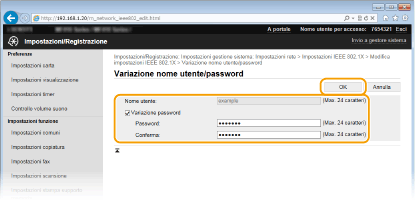 Immettere fino a 24 caratteri alfanumerici per il nome utente. [Variazione password]