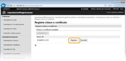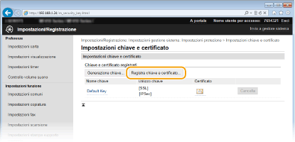 Fare clic su [Registra chiave e certificato] o [Registra certificato CA].