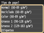 Una vez registradas las opciones de papel predeterminadas, la pantalla de configuración del papel no aparece cuando se carga papel, y se utiliza la misma configuración en todo momento. Si carga un tamaño o tipo de papel diferentes sin cambiar las opciones de papel, es posible que el equipo no imprima correctamente. Para evitar este problema, seleccione <Especificar cuando cargue papel> en el paso 3, y, a continuación, cargue el papel.