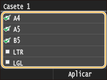 Los tamaños de papel que no estén marcados podrán visualizarse pulsando <Otros tamaños> en la pantalla para seleccionar la opción de tamaño del papel.