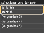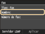 ![]() Si aparece la pantalla de autenticación al pulsar <Iniciar búsq.>, introduzca el nombre de usuario del equipo y la contraseña registrada en el servidor LDAP, y pulse <Aplicar>. Registro de servidores LDAP