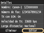 Creación de opciones detalladas (solamente cuando se registren para fax)