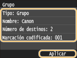 Repita los pasos 7 a 9 hasta que haya registrado todos los destinos que desee registrar y, a continuación, pulse <Aplicar>.