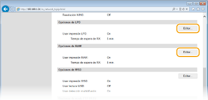 Seleccione la casilla de verificación para imprimir a través de LPD. Cuando no utilice la impresión LPD, quite la marca de la casilla de verificación. [Usar impresión RAW]