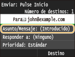 Introduzca el asunto utilizando las teclas numéricas y pulse <Aplicar>.