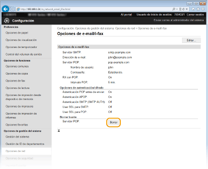 Si desea especificar el nombre del remitente del e-mail: Guardar nombre equipo (E-mail/I-fax)