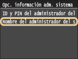 ![]() En el modelo MF419x / MF418x, el ID y el PIN del administrador del sistema son de forma predeterminada "7654321". Se recomienda cambiar este valor para una mayor seguridad.