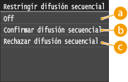 Seleccione <Confirmar difusión secuencial> o <Rechazar difusión secuencial>.