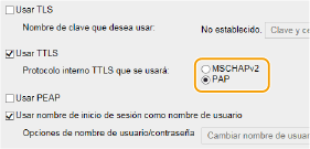 Seleccione la casilla de verificación [Usar TTLS] o [Usar PEAP].