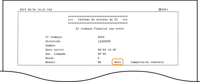 No pudo enviarse un fax porque el equipo del destinatario no respondió debido a que la línea estaba ocupada o por otros motivos.