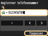 Voer het faxnummer in met de numerieke toetsen en tik op <Toepassen>.