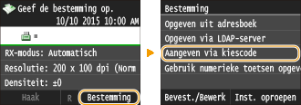 Als u verkort kiezen met codenummers wilt gebruiken, moet de bestemming van tevoren in het Adresboek zijn geregistreerd. Bestemmingen opslaan in het adresboek