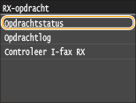 Schakel deze optie in als u RX-resultaatrapporten wilt afdrukken wanneer er documenten in het geheugen worden opgeslagen. Tik op <Aan> om rapporten af te drukken. U moet ook <RX-resultaatrapport> instellen op <Aan>.