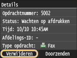 U kunt gedetailleerde gegevens bekijken van de documenten die in het geheugen zijn opgeslagen, zoals faxnummers van afzenders en het aantal verzonden pagina's, en vervolgens overbodige documenten verwijderen.