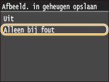 Selecteer <Aan> of <Alleen bij fout>
