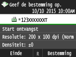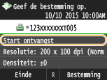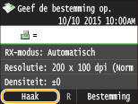 Als er een externe telefoon of optionele handset op de machine is aangesloten, kunt u de handset opnemen in plaats van op <Haak> te tikken.