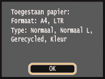 Controleer dat het getoonde formaat & soort papier in het apparaat is geplaatst en tik op <OK>.