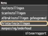 Alle instellingen voor de printer worden kort toegelicht. Standaardinstellingen worden aangegeven met een dolksymbool (