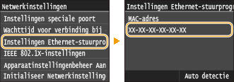 Als u het apparaat aansluit op een switching hub of bridge, kan er sprake zijn van een verbindingsfout, zelfs wanneer het IP-adres goed is geconfigureerd. Dit probleem kunt u oplossen door een bepaald vertragingsinterval in te stellen waarna het apparaat mag gaan communiceren. Een wachttijd instellen voor verbinding met een netwerk