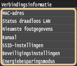 <Verbind. info.> en selecteer de instelling die u wilt bekijken.