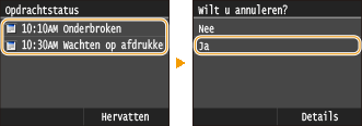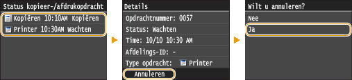 Annuleren vanuit de externe UIU kunt het afdrukken annuleren vanuit de pagina [Opdrachtstatus] van de UI op afstand: De huidige status van afdruktaken controleren