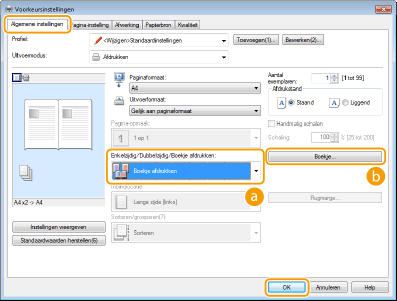 Selecteer [Boekje afdrukken] in [Enkelzijdig/Dubbelzijdig/Boekje afdrukken]