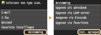 U kunt een bestemming selecteren uit de drie laatst gebruikte bestemmingen. Als u een eerder gebruikte bestemming opgeeft, worden ook de laatst gebruikte scaninnstellingen, zoals de dichtheid, voor die bestemming geselecteerd.