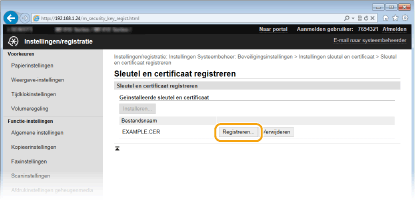 Klik op [Sleutel en certificaat registreren] of [Registreer CA-certificaat].