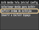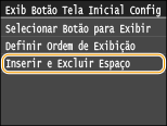 Se o ecrã Início estiver cheio e não puder conter mais definições, elimine botões registados e espaços em <Configs.Tela Início>.