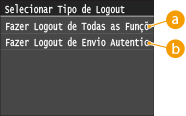 Selecione a opção para concluir sessão apenas no Envio Autorizado (função de fax ou digitalização). Depois de utilizar a máquina, prima novamente