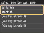 Selecione o servidor LDAP no qual estão registados o seu nome de utilizador e palavra-passe.