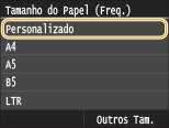 Se o ecrã mostrado acima não aparecer quando o papel é colocadoSe colocar sempre o mesmo papel no tabuleiro multifuncional, pode ignorar as operações de definição do papel registando o tamanho e o tipo do papel como predefinição. No entanto, o ecrã mostrado acima não aparece se registar a predefinição. Para aceder ao ecrã, selecione <Especificar ao Colocar Papel> (Registar predefinições de papel para o tabuleiro multifuncional).