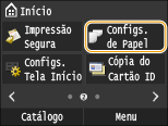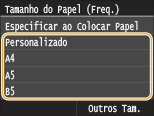 Após o registo da predefinição de papel, o ecrã de definição de papel não aparece quando o papel é colocado e é utilizada sempre a mesma definição. Se colocar um tamanho ou um tipo diferente de papel sem alterar as definições de papel, a máquina pode não imprimir corretamente. Para evitar esse problema, selecione <Especificar ao Colocar Papel> no passo 3 e depois coloque o papel.