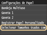 Pode certificar-se de que apenas os tamanhos de papel mais utilizados são apresentados no ecrã para selecionar a definição de tamanho do papel.