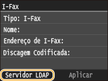 O nome, número de fax ou endereço de correio eletrónico do utilizador selecionado que se encontram registados no servidor LDAP serão colocados no campo de destino.
