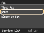 ![]() Se aparecer o ecrã de autenticação quando tocar em <Iniciar Pesq.>, introduza o nome de utilizador da máquina e a palavra-passe registada no servidor LDAP e toque em <Aplicar>. Registar servidores LDAP