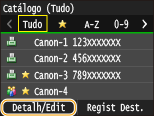 <Configurações de Fax>. No entanto, as definições efetuadas a partir de <Catálogo> são ativadas para as definições detalhadas de destinos registados no livro de endereços. |