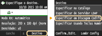 Para poder utilizar números com marcações codificadas, o destino tem de ser previamente registado no Livro de Endereços. Registar destinos no livro de endereços