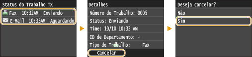 Tocar em <Cancelar> no Ecrã durante a Transmissão de Faxes