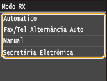 Pode configurar a máquina para receber faxes automaticamente quando ouvir o toque de uma chamada recebida dentro de um período de tempo especificado. Alternar para RX Automático