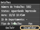 Enquanto a função de receção na memória estiver ativada, os documentos guardados na memória não são apagados, mesmo que sejam reencaminhados; é possível reencaminhar várias vezes os mesmos documentos.