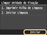 É possível que alguma sujidade adira às unidades de fixação no interior da máquina e origine o aparecimento de riscas pretas nas impressões. Para limpar a unidade de fixação, efetue o seguinte procedimento. Tenha em atenção que não é possível limpar a unidade de fixação se existirem documentos na máquina a aguardar impressão. Para limpar a unidade de fixação, é necessário papel normal de tamanho A4 ou Letter. Coloque o papel na gaveta de papel ou tabuleiro multifuncional antes de efetuar o seguinte procedimento.