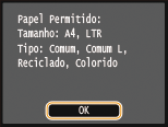 Certifique-se de que colocou na máquina o tamanho e o tipo de papel apresentados e toque em <OK>.