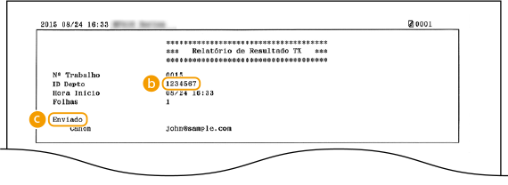 <Relatório de Resultado TX por Fax> ou <Relatório de Resultado TX de E-mail/I-Fax/Arquivo>