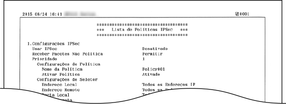 Pode verificar a lista de nomes de políticas e as definições de IPSec registadas na máquina imprimindo uma Lista de Políticas IPSec.