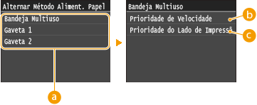 <Bandeja Multiuso> não aparece se a opção <Impressora> tiver sido selecionada no ecrã anterior (