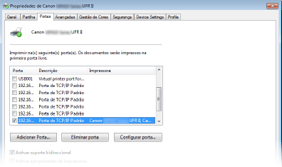![]() Só pode adicionar uma porta MFNP quando instalar o controlador da impressora ou de fax disponibilizado com o DVD-ROM, ou quando transferir e instalar o controlador de impressora ou de fax no site da Canon.
